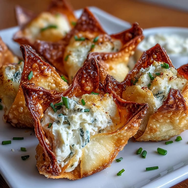Zapisz My neighbor brought over a container of these crispy wontons last summer, still warm from her air fryer, and I was instantly hooked by how light yet indulgent they tasted. The cream cheese and crab filling reminded me of those fancy appetizers at dim sum restaurants, except these were infinitely easier to make at home and somehow even more addictive. She laughed when I asked for the recipe, saying she'd been perfecting it for months after accidentally discovering that air frying creates the exact crunch you'd get from deep frying but without the oil-splattered stovetop drama. Now they're my go-to when friends drop by unexpectedly, and I've made them so many times that folding the wrappers has become almost meditative.