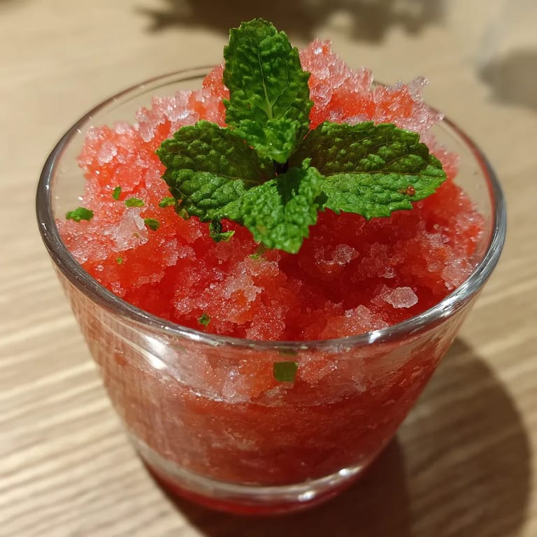 - Nakładaj granitę do schłodzonych szklanek, dekorując świeżą miętą, od razu podawaj bo szybko się topi