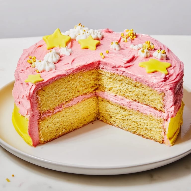 Kolorowe dekoracje cukrowe w kształcie serc i gwiazdek najlepiej pasują do tego ciasta, podkreślając jego magiczny charakter.