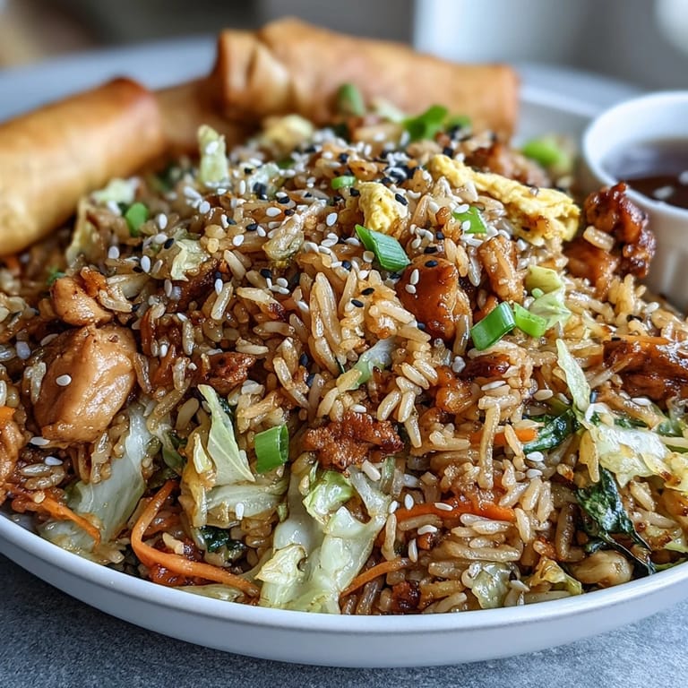 Zapisz This Crispy Chicken Fried Rice with Egg Roll Flavors is a brilliant fusion dish that brings the savory, aromatic essence of an egg roll bowl into a comforting fried rice format. Featuring lean minced chicken, crisp cabbage, and a perfect blend of ginger and garlic, this Asian-inspired meal is both dairy-free and incredibly satisfying for a weeknight dinner.
