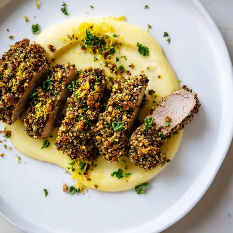 Zapisz Soczysta polędwiczka wieprzowa w ostrzejszej, chrzanowej skorupce z delikatnym musem jabłkowym to połączenie pikantności, delikatności i słodyczy w jednym daniu.