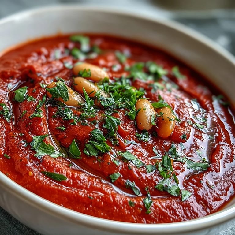 Zapisz This Roasted Red Pepper and White Bean Soup is more than just a meal; it's a comforting experience in a bowl. Enjoy the balance of smoky, sweet, and savory flavors in every spoonful.