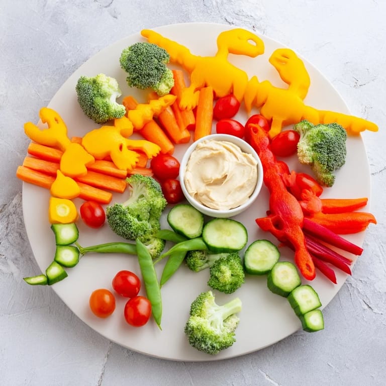 This dino-inspired veggie platter adds fun and nutrition to any gathering. Enjoy the creativity and the taste!