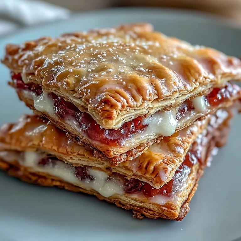 Zapisz Znalazłem opakowanie klasycznych Pop-Tarts w szafce mojej babci i pomyślałem, że mogę zrobić coś lepszego. Guawa zawsze przyciągała moją uwagę na targowiskach – ma tę słodko-kwaśną równowagę, która czuje się jak słoneczny dzień w każdym kęsie. Kiedy połączyłem pastę z gładkim serem śmietankowym, zrozumiałem, że mogę stworzyć coś zarówno nostalgicznego, jak i zupełnie nowego. Te ciasta to połączenie wszystkiego, co kocham w domowym pieczeniu – drożdżowe warstwy, słodkie napełnienie i ten błysk glazury, która wygląda prawie zbyt pięknie, aby jej zjeść.