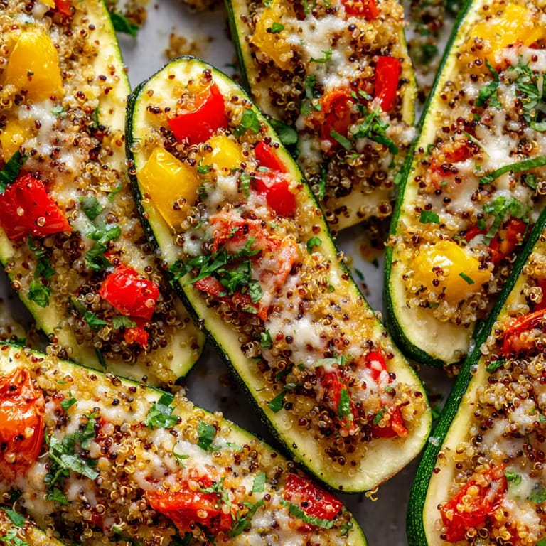 Zapisz Delikatne cukinie wypełnione aromatycznym farszem z komosy ryżowej, kolorowych warzyw i ciągnącego sera to pożywny, sycący obiad, który rozkochał moją rodzinę do granic. Ten przepis łączy lekkość letnich warzyw z sycącym śródziemnomorskim akcentem. Na stole pojawił się pierwszy raz, gdy szukałam nowego sposobu na wykorzystanie cukinii z ogródka i odtąd nie wyobrażam sobie bez niego sezonu.