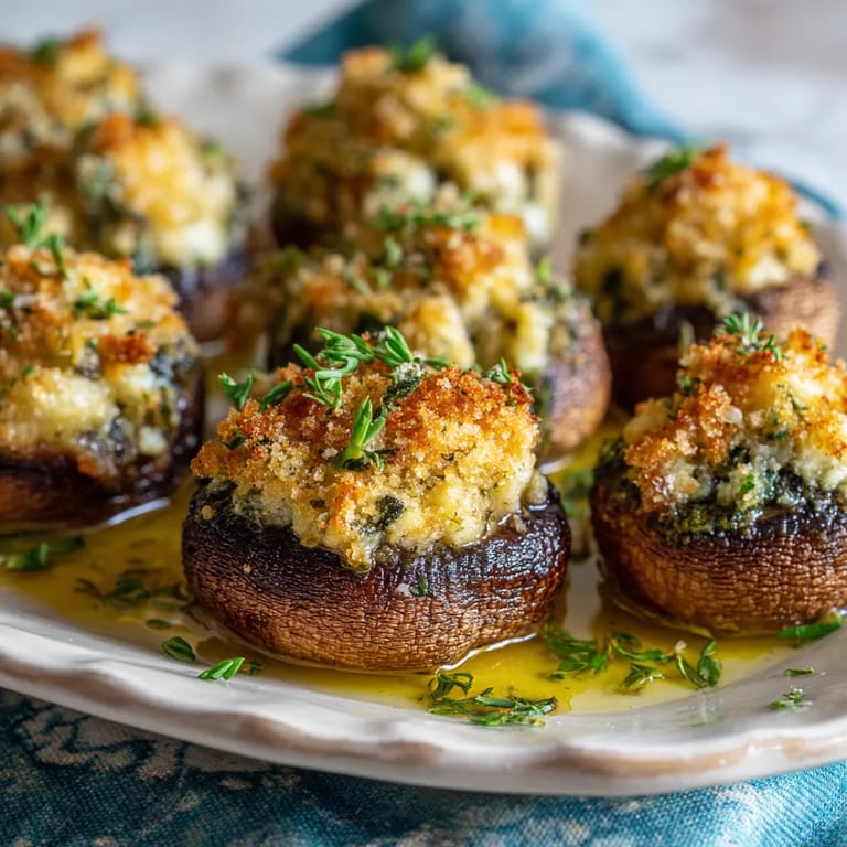 Zapisz Te przepyszne faszerowane grzyby to idealny sposób na rozpoczęcie każdego spotkania rodzinnego. Duże kapelusze grzybów wypełnione kremową mieszanką polskiego sera, ziół i przypraw tworzą przekąskę, która znika z talerza w mgnieniu oka.