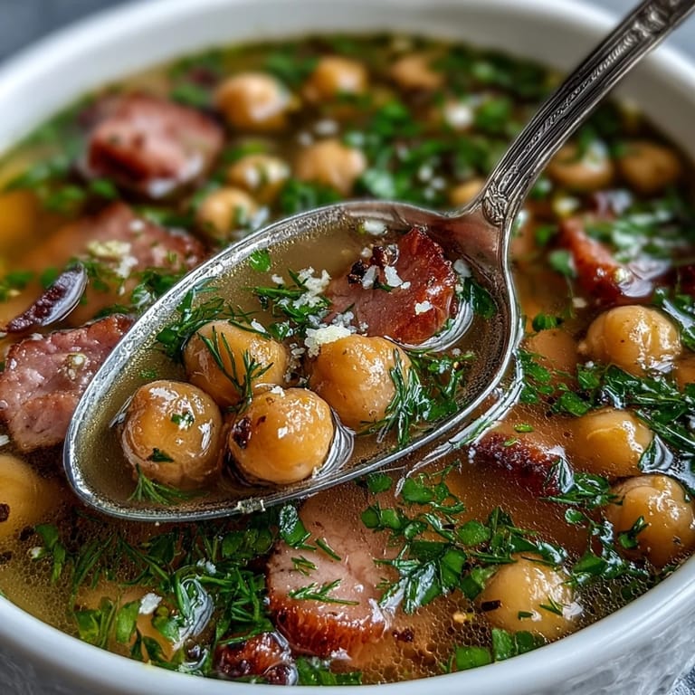 Zapisz Pewnego chłodnego październikowego wieczoru, kiedy w kuchni pachniało jeszcze letnimi ziołami, odkryłam, że najprostsze zupy potrafią być najbardziej satysfakcjonujące. Ta zupa z szynką i ciecierzycą narodziła się z przypadkowego spojrzenia na półkę, gdzie stała puszka ciecierzycy obok resztek szynki. Zacząłem mieszać składniki bez przesadnego planowania, a rezultat okazał się nieoczekiwanie harmonijny i pełen charakteru. Cytrusowy zapach cytryny oraz świeży koperek natychmiast przywołały wspomnienia śródziemnomorskich wakacji. Ta zupa stała się moją tajną bronią na każdy dzień, gdy potrzebuję czegoś ciepłego, sycącego i gotowego w niecałą godzinę.
