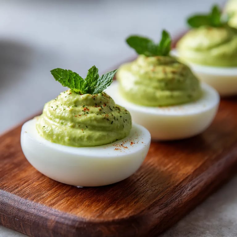 Zapisz Ta wykwintna przekąska z jajek na twardo z musem z zielonego groszku zawsze jest hitem na moich przyjęciach. Łączy w sobie kremową słodycz groszku z delikatnym smakiem jajek, tworząc idealną równowagę smaków i tekstur. Przygotowanie jest niezwykle proste, a efekt wizualny zawsze zachwyca gości.