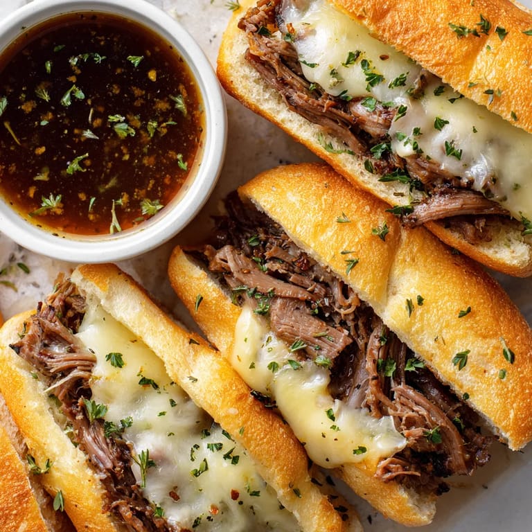 Zapisz Sycące i aromatyczne Slow Cooker French Dip Sandwiches to sposób na wyjątkowy posiłek bez stania przy kuchni Kompletne zestawienie miękkiej wołowiny długo duszonej w bogatym bulionie świeżo wypieczone bułeczki i roztapiający się ser oraz obowiązkowy sos au jus do maczania nadają temu daniu restauracyjny charakter a cały proces jest zaskakująco prosty