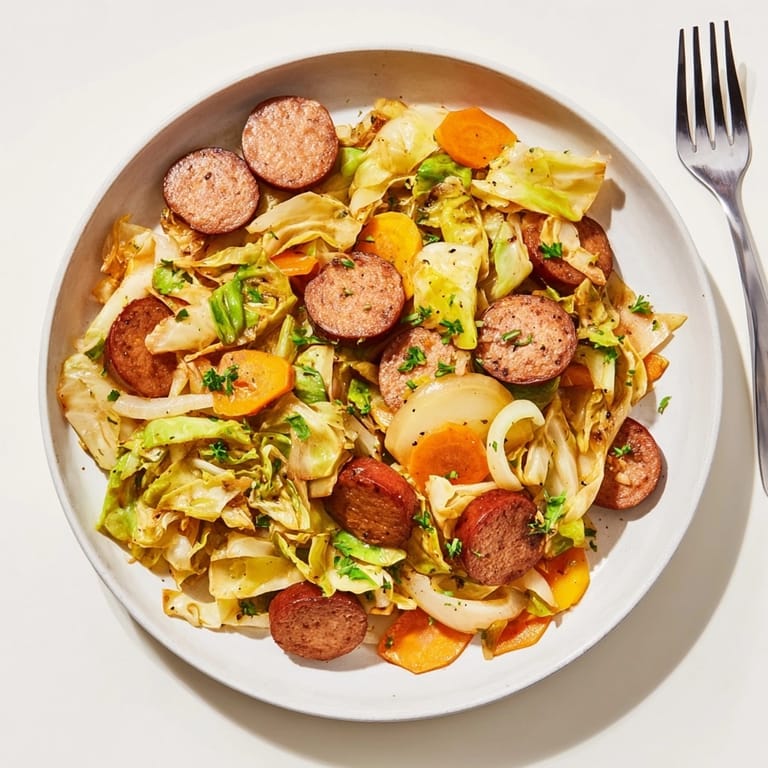 Zapisz To rozgrzewające danie z kapustą i kiełbasą powstało podczas poszukiwań sycącego, prostego obiadu, który przypominałby domowe smaki babci. Jedna patelnia, minimum zamieszania, a efekt to aromatyczne kawałki kiełbasy, delikatna kapusta i warzywa – wszystko razem tworzy coś na wzór kuchni wschodnioeuropejskiej w ekspresowym wydaniu.