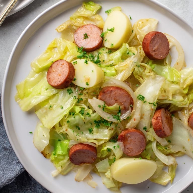 Zapisz Rustykalna potrawa z kapustą i kiełbasą z gotowanymi ziemniakami to sycące, pełne smaku danie, które idealnie sprawdzi się na rodzinny obiad w tygodniu. Miękka kapusta, aromatyczna kiełbasa i delikatne ziemniaki w pysznym połączeniu kuchni środkowoeuropejskiej.