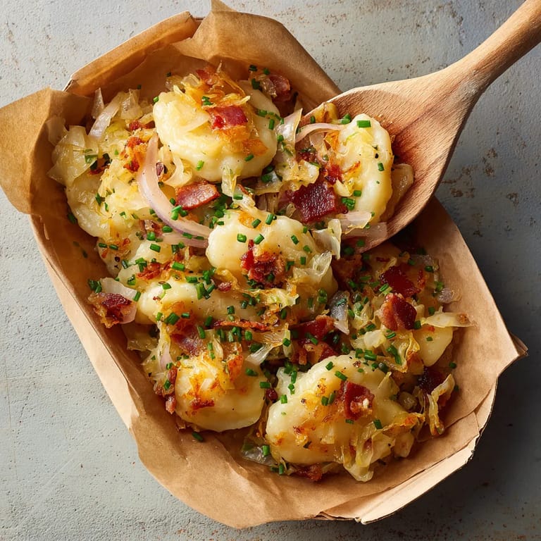 Zapisz Chrupiące kluski z kapustą i wędzonym boczkiem pojawiały się u nas zawsze na rodzinnych spotkaniach przy dużym stole Ten polski klasyk znany jako haluski łączy prostotę domowej kuchni z niesamowitą wygodą Idealne rozwiązanie gdy potrzeba sycącego i relaksującego posiłku który rozgrzeje w chłodny dzień Składniki są tanie i łatwo dostępne a efekt zaskakuje swoją tradycyjną głębią smaku
