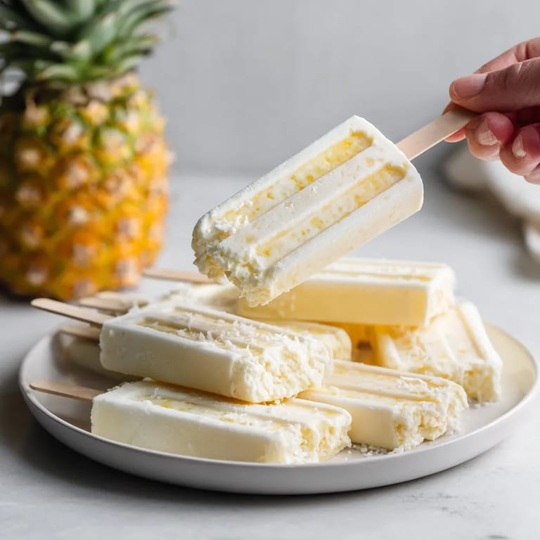 Zapisz To idealne lody na patyku powstały z połączenia kremowego mleka kokosowego oraz dojrzałego ananasa. Są niezwykle orzeźwiające i zawsze kojarzą mi się z tropikalnym latem. Uwielbiam je przygotowywać, gdy za oknem temperatura przekracza trzydzieści stopni – zastępują słodkie przekąski i dostarczają mnóstwo przyjemności bez wyrzutów sumienia.