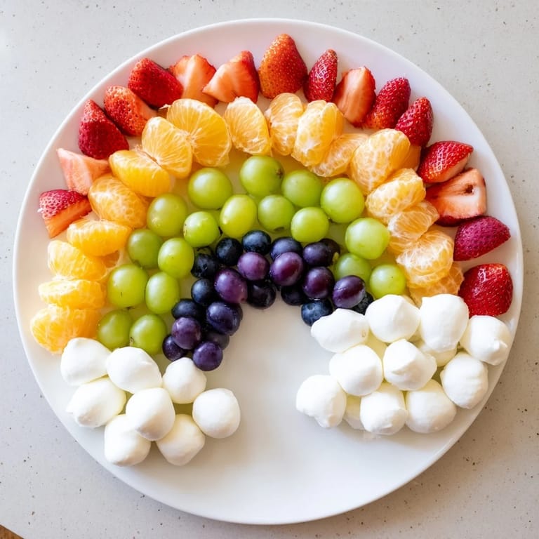This snack board combines both taste and nutrition, inviting everyone to nibble and enjoy a spectrum of flavors. The rainbow arc arrangement makes snacking interactive and exciting, while the mini clouds of mozzarella or marshmallows add a whimsical touch. Pair with vanilla yogurt or whipped cream for a sweet dip that enhances every bite.