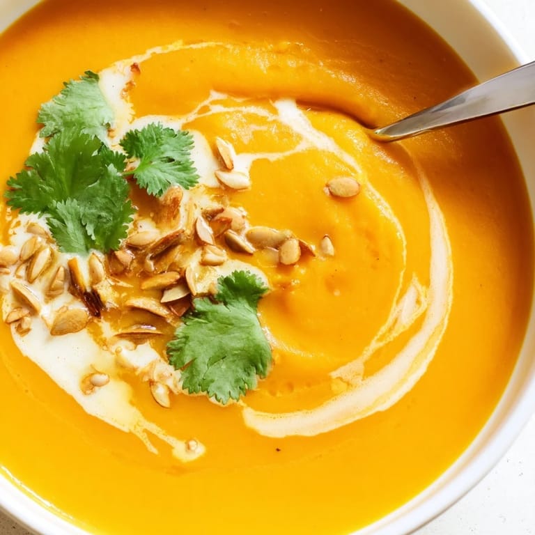 Podawaj z grzankami, świeżą kolendrą, pietruszką albo prażonymi pestkami dyni. Lekka sałatka lub chrupiące bagietki świetnie uzupełnią posiłek.