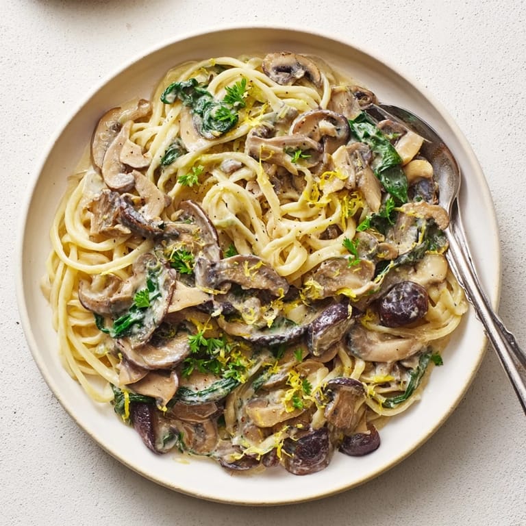 - Grzyby i warzywa: 400 g mieszanych grzybów (pieczarki, shiitake lub boczniaki), pokrojone; 1 średnia cebula, drobno posiekana; 2 ząbki czosnku, przeciśnięte; 1 łyżka oliwy; 1 łyżka masła (lub masło roślinne); 100 g młodego szpinaku (opcjonalnie)