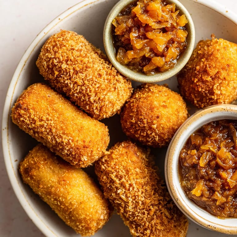 Zapisz Chrupiące krokiety z bigosem to zabawna nowoczesna interpretacja klasyki polskiej kuchni które idealnie sprawdzają się na spotkania z przyjaciółmi lub rodzinne biesiady Rozgrzewający farsz inspirowany tradycyjnym bigosem otulony złocistą panierką a do tego słodko-pikantny dip jabłkowo-musztardowy tworzą połączenie które zawsze robi wrażenie i znika ze stołu szybciej niż zdążysz dosmażyć kolejną partię