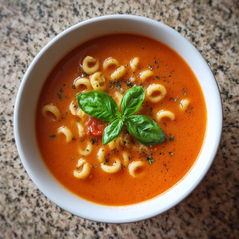 Zapisz Ta letnia zupa pomidorowa z makaronem to doskonały sposób na wykorzystanie dojrzałych pomidorów w czasie sezonu. Jest lekka, odświeżająca i pełna intensywnego smaku, który sprawia, że wracam do niej każdego lata.