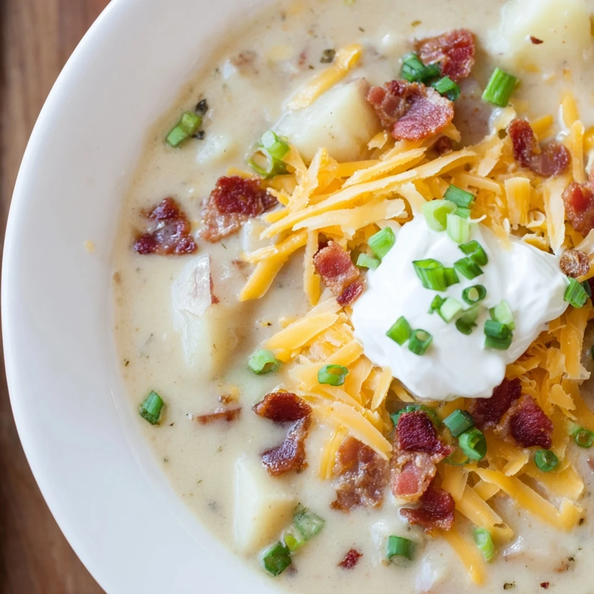 - Dwa zielone cebule, cienkie natkę, i dodatkowo startowany cheddar do podania: To będzie twoja rozjaśniająca nuta na wierzchu.