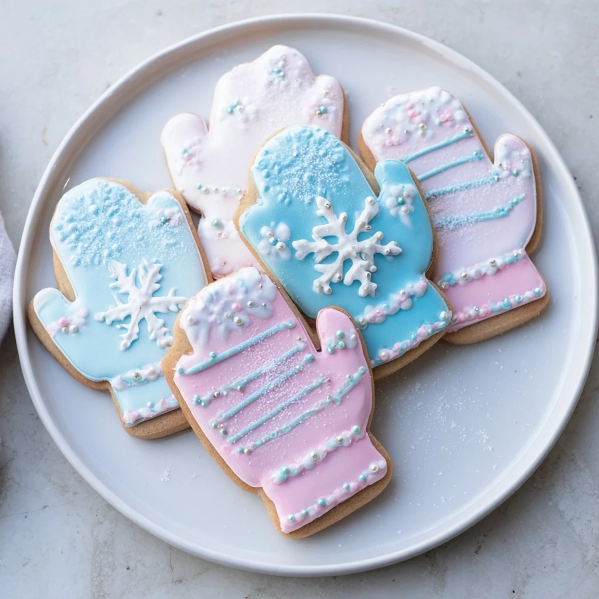 Zapisz Uroczy zestaw ciasteczek w kształcie rękawiczek, ozdobionych przytulnym lukrem królewskim — idealne na zimowe spotkania lub świąteczne prezenty.