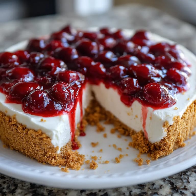 Zapisz To ciasto sernikowe bez pieczenia z wiśniami to kremowy i pyszny deser z wierzchem z soczystego wiśniowego nadzienia, idealny na ciepłe dni lub jako wyjątkowy smakołyk na każdą okazję.