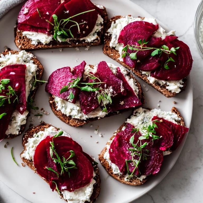 - Ułóż plasterki buraka na chlebie lub krakersach.