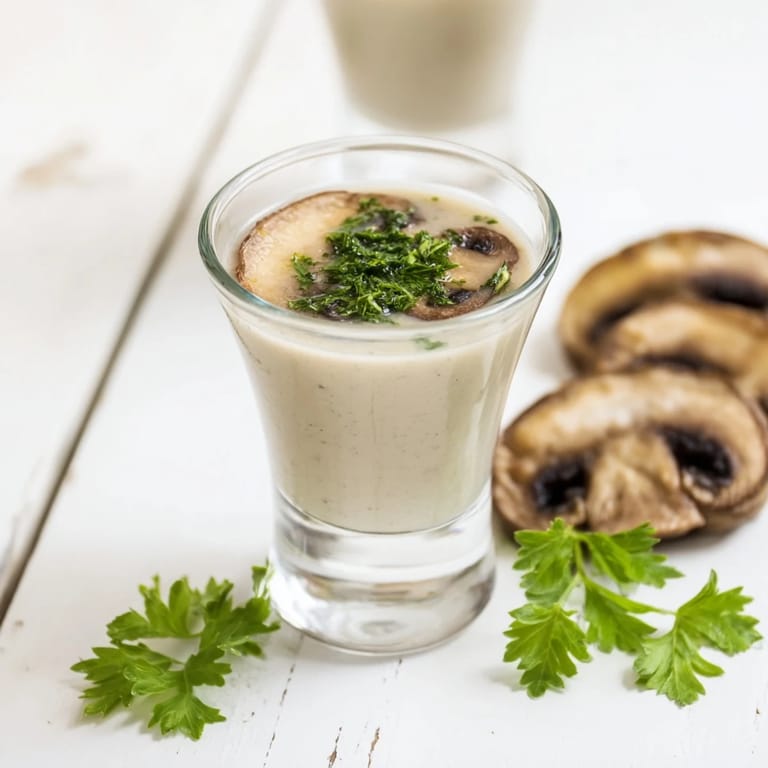 Zapisz Expressowa polska zupa grzybowa w małych porcjach – bogata, kremowa i aromatyczna, idealna jako rozgrzewająca przystawka lub shot na imprezę.