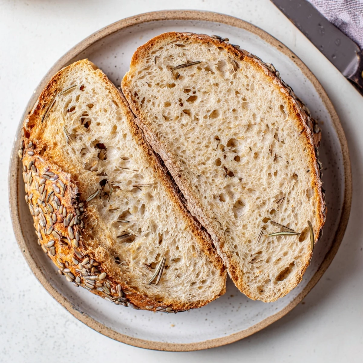 Zapisz Prosty, rustykalny polski chleb z aromatycznymi kminkiem, idealny na kanapki lub podawany na ciepło z masłem.