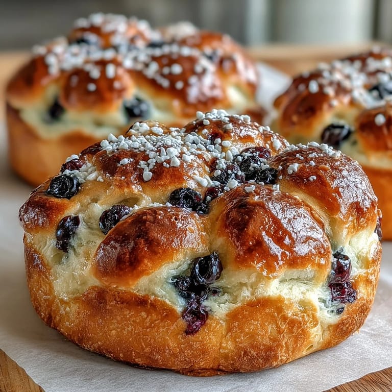 Puszysty chleb z twarogiem i borówkami, idealny na zdrowe śniadanie.