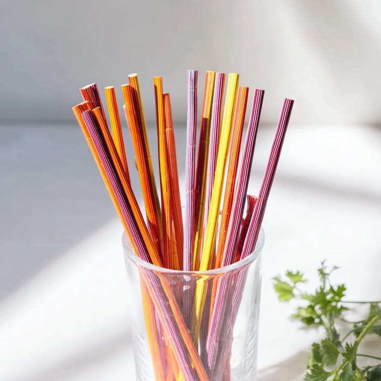 - Ułóż w każdej szklance mieszankę różnych kolorowych patyczków marchewkowych ustawionych pionowo.