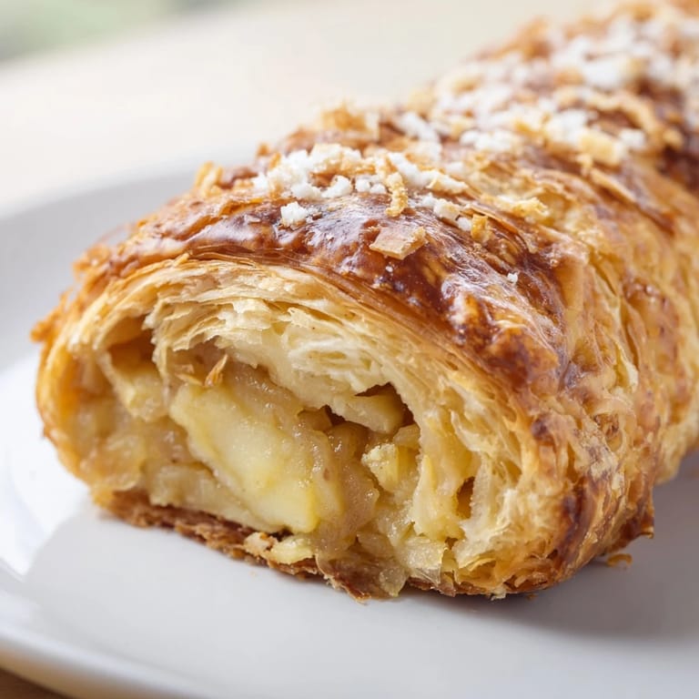 Zapisz Te rogaliki w stylu croissant są doskonałe na śniadanie lub jako przytulna przekąska. Kruche, maślane ciasto wypełnione słodkim jabłkiem i kremowym serem sprawia, że każdy kęs to czysta przyjemność.
