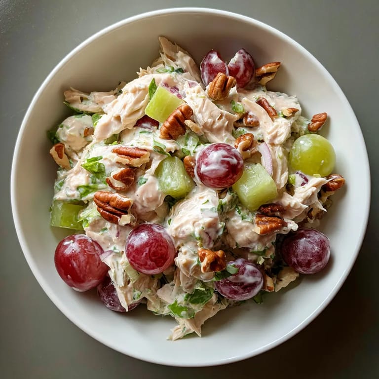 Możesz bez problemu zamienić majonez na cały jogurt grecki dla lżejszej wersji. Jeśli nie masz orzechów pekan, skorzystaj z migdałów lub pomiń je całkowicie, gdy musisz przygotować wersję bez orzechów. Zamiast winogron sprawdzą się też kawałki świeżego jabłka.