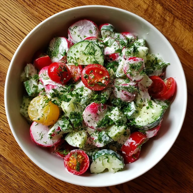 Zapisz Ta orzeźwiająca sałatka z rzodkiewki z kefirem to idealne danie, które łączy chrupiące rzodkiewki z kremowym kefirem i świeżymi ziołami. Jest prosta w przygotowaniu i idealnie sprawdza się jako lekki lunch lub dodatek do grillowanych mięs.