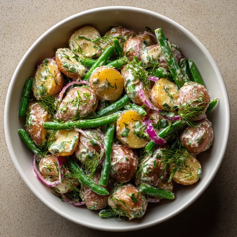 Zapisz Ta sałatka z młodych ziemniaków z pikantnym sosem chrzanowym to odświeżająca propozycja na ciepłe dni. Połączenie delikatnych ziemniaków z wyrazistym chrzanem tworzy idealną równowagę smaków, która sprawdzi się jako dodatek do grillowanych mięs lub samodzielne danie.