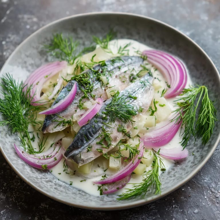 Zapisz Ten pomeriański śledź z kremem jabłkowo-cebulowym to mój sekret na elegancką przekąskę, która zawsze zachwyca gości. Jest idealnym balansem między słonawym śledziem a słodko-kwaśnym kremem, który podkreśla smak ryby zamiast go przytłaczać.