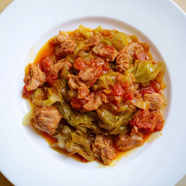 Po raz pierwszy przygotowałam ten gulasz wczesną wiosną, gdy tęskniłam za czymś prostym, ale konkretnym. Smak młodej kapusty połączony z soczystą wieprzowiną zaskoczył rodzinę — danie poszło w mig!