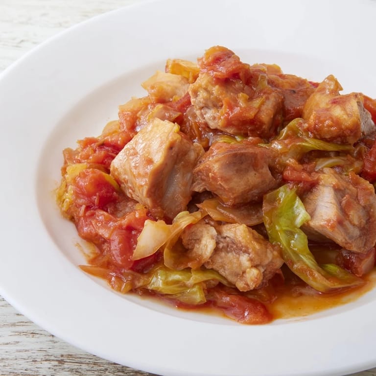 Zapisz Gulasz z młodej kapusty i wieprzowiny to sycące, rozgrzewające danie z delikatną wieprzowiną, słodką kapustą, cebulą i odrobiną pomidorów dla głębi smaku. Potrzebujesz tylko pięciu podstawowych składników.