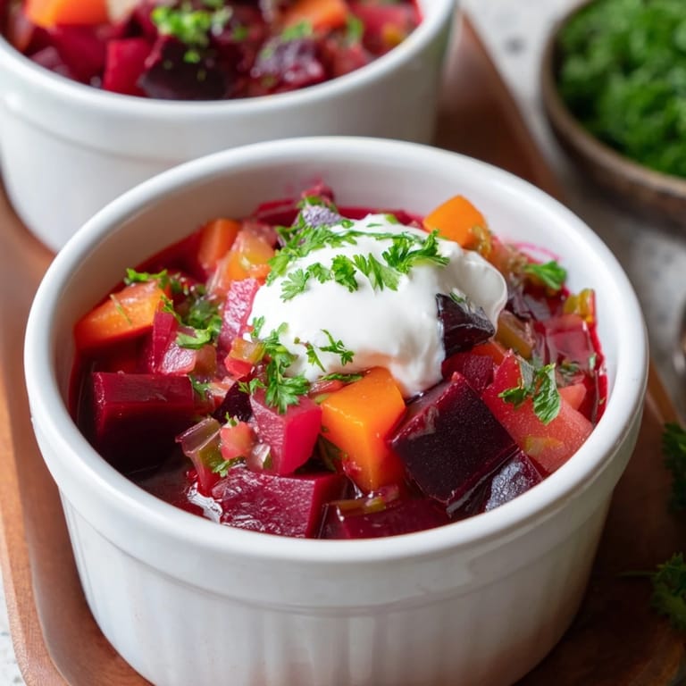 Zapisz Rozgrzewający mini-gulasz z buraków to aromatyczne, kolorowe i sycące danie wegetariańskie, pełne korzeniowych warzyw i ziół, podane w pojedynczych kokilkach dla maksymalnej wygody i domowego klimatu.