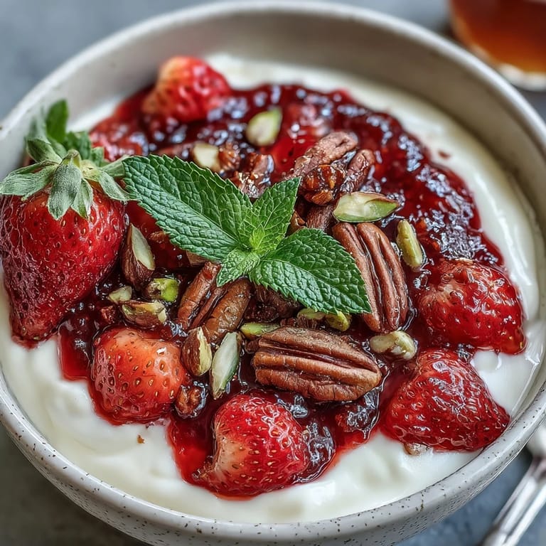 This bowl works at any hour because it respects its own simplicity. I've served it after dinner when something light felt right, and I've made it for weekend brunch when people are sitting around and time moves slower. The beauty is that it never apologizes for being itself—creamy, bright, textured, and honest. There are no shortcuts here, no hidden techniques, just strawberries learning to be their best selves and yogurt ready to carry them.