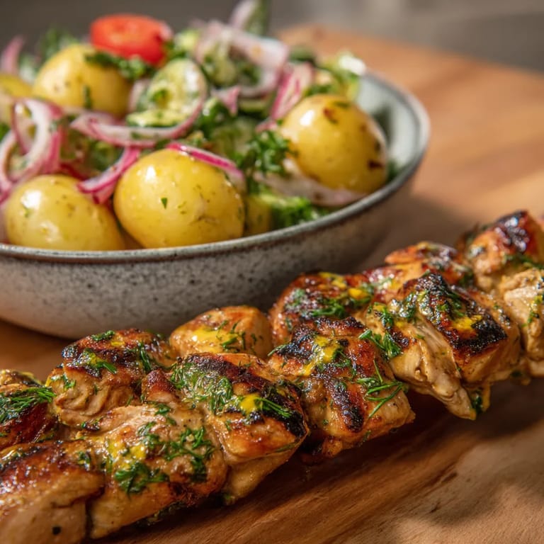 Zapisz Soczyste szaszłyki z kurczaka w miodowo-musztardowej marynacie z towarzyszącą im sałatką z młodych ziemniaków to wiosenno-letni hit, który świetnie sprawdza się zarówno na rodzinny obiad, jak i grill z przyjaciółmi. Delikatny kurczak, karmelizowany miód i musztarda Dijon tworzą zgrany duet, a lekka sałatka z nowych ziemniaków nadaje świeżości każdemu talerzowi.