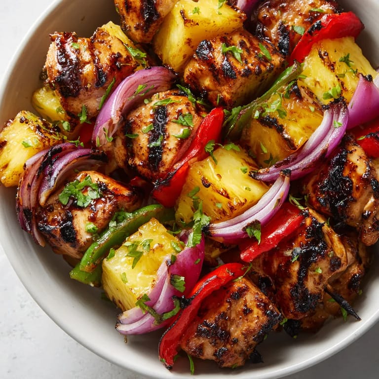 Zapisz Szaszłyki z kurczakiem i ananasem to letni hit na grilla który zawsze znika z talerza w kilka chwil Soczyste kawałki kurczaka otulone słodką marynatą słodki ananas i chrupiąca papryka tworzą kolorowe i aromatyczne połączenie inspirowane kuchnią hawajską Idealne na rodzinny obiad w ogrodzie lub spotkanie z przyjaciółmi przy grillu