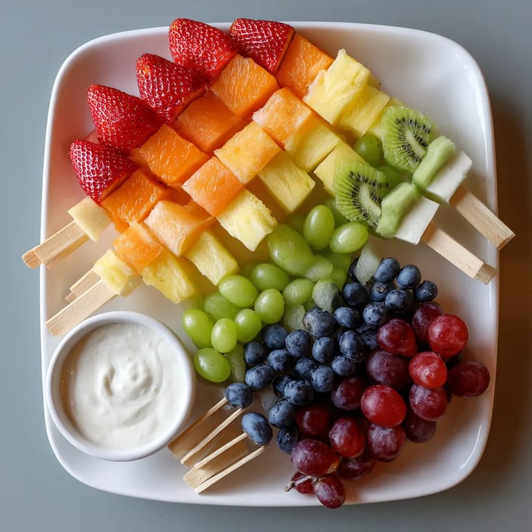 Zapisz Tęczowe szaszłyki owocowe z dipem jogurtowym to szybka i efektowna przekąska, która nie tylko wygląda zachwycająco, ale też dostarcza porządną dawkę świeżości i witamin Nie ma nic prostszego a jednocześnie bardziej efektownego Jeśli szykuję przyjęcie urodzinowe czy letni piknik zawsze przygotowuję te szaszłyki zachwyt gwarantowany