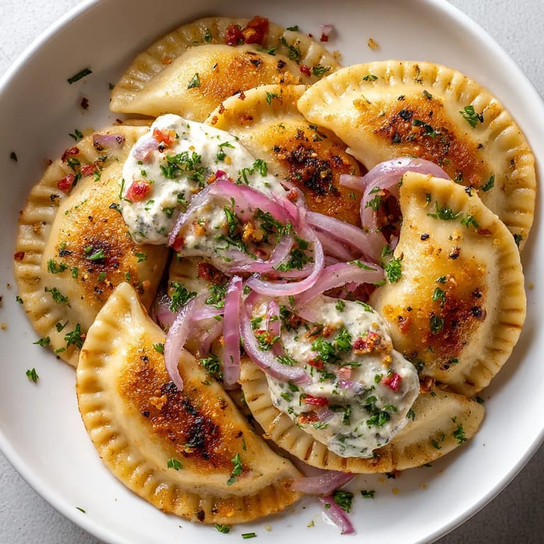 - Czerwona cebulka: cienko krojona dodaje słodyczy i pięknie podkreśla smak pierogów