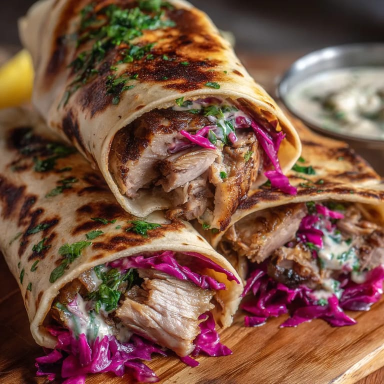 Mięso, kapustę i sos przechowuj oddzielnie w lodówce. Składaj wrapy tuż przed podaniem.