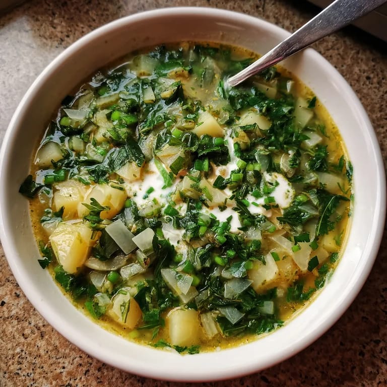 Zapisz Ta odświeżająca zupa szczawiowa łączy w sobie kwaskowaty smak szczawiu, kremową konsystencję i delikatność ziemniaków, tworząc doskonałe danie na wiosenne dni, które przywołuje tradycje polskiej kuchni.