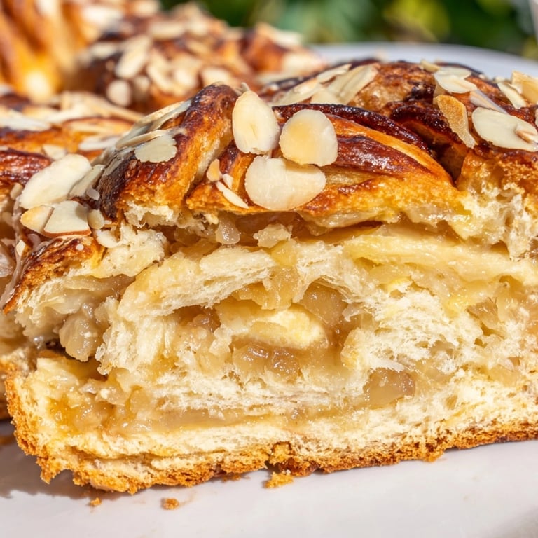 Zapisz Ten puszysty, zakręcany babka z gruszkami i kremem migdałowym to prawdziwa gratka na rodzinne śniadanie lub popołudniową herbatę Przyjemnie wilgotne wnętrze pełne soczystych owoców migdałowej nuty i delikatnego ciasta drożdżowego przyciąga wszystkich do stołu już od pierwszego kęsa