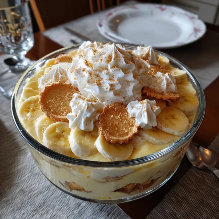 Moją ulubioną częścią tej receptury są świeże banany które układam ze swoją córką – razem zawsze próbujemy podkradać po kilka plasterków zanim pokryje je krem. Ta zabawa sprawia że nawet najprostszy pudding smakuje jak prezent z kuchni.