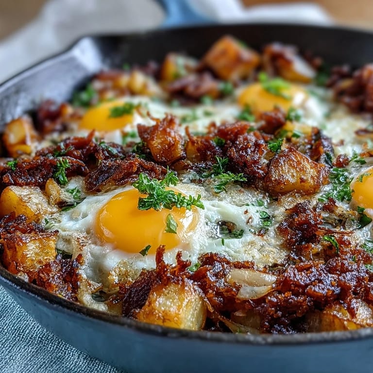 Zapisz Moim ulubionym porannym zaskoczeniem jest ten skład składający się z chrupiącej mieszanki wołowiny konserwowej, złotych ziemniaków i jajek, które wciąż się usmażą. Odkryłem tę potrawę przypadkowo, kiedy szukałem czegoś na szybkie śniadanie dla głodnych gości, a teraz jest to moja sekretna broń, gdy chcę zrobić wrażenie bez wysiłku. Każda porcja ma w sobie coś magicznego, coś, co sprawia, że ludzie wracają do mnie z prośbą o przepis. To nie jest tylko jedzenie, to tradycja, którą budzę każdy poranek, gdy mam ochotę na coś naprawdę sytego.