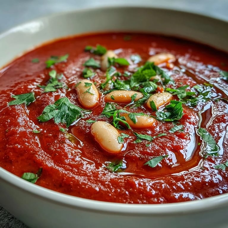 Zapisz This Roasted Red Pepper and White Bean Soup is more than just a meal; it's a comforting experience in a bowl. Enjoy the balance of smoky, sweet, and savory flavors in every spoonful.