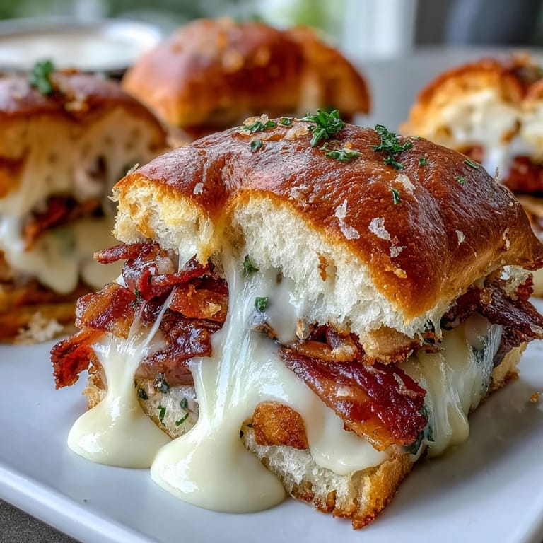 Zapisz What makes these sliders truly special is the homemade Mornay sauce—a velvety blend of butter, cream, sharp white cheddar, and Parmesan, seasoned with just a hint of nutmeg. Unlike ordinary cheese sauce, Mornay brings an elegant richness that elevates these sliders from simple sandwiches to something truly memorable. The soft slider rolls (Hawaiian or brioche work beautifully) soak up just enough sauce while maintaining their pillowy texture, creating the perfect vehicle for the layers of savory turkey, juicy tomatoes, and crispy bacon.